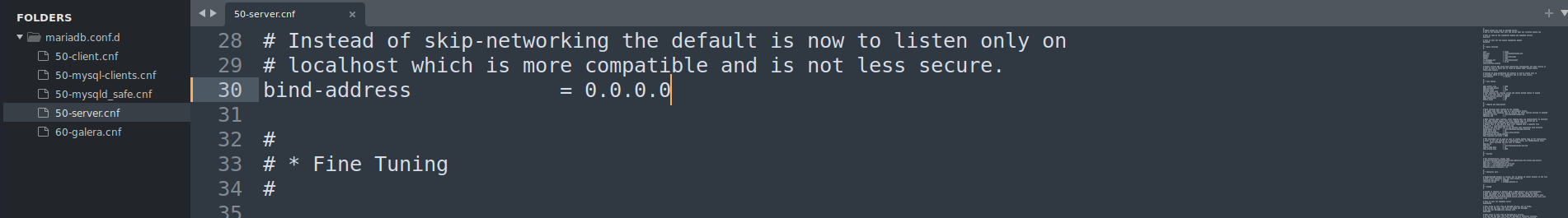 # Changed from 127.0.0.1 -> 0.0.0.0 nano /etc/mysql/mariadb.conf.d/50-server.cnf