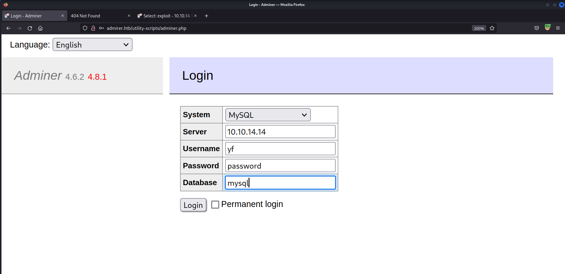 TCP/80 (HTTP) - /utility-scripts, Found Adminer database management tool