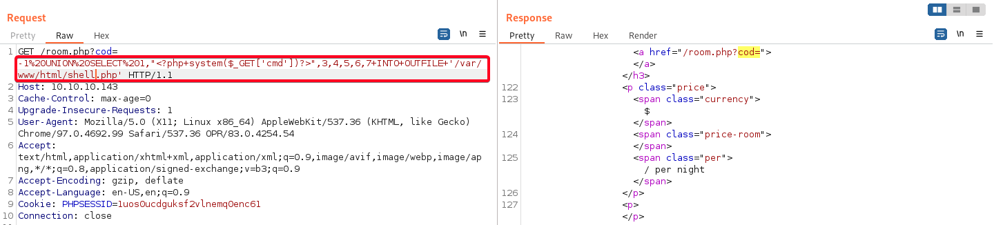This machine begins w/ a webpage enumeration, a vulnerable GET parameter ?cod= is susceptible to SQLi, through the SQLi, we are able to extract DBMS user DBadmin’s hash, and crack it w/ hashcat. Next, we are able to insert a web shell through phpmyadmin portal, allowing us to obtain a low-privilege/www-data shell.